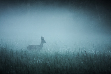 The color and lighting is beautiful, and makes a very powerful photograph. I love how the two animals in the foreground are dark and more blurry, but the furthest, center one is clear and looking straight into the camera.