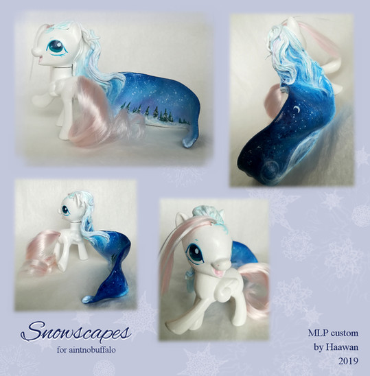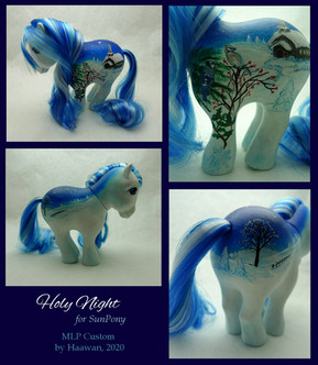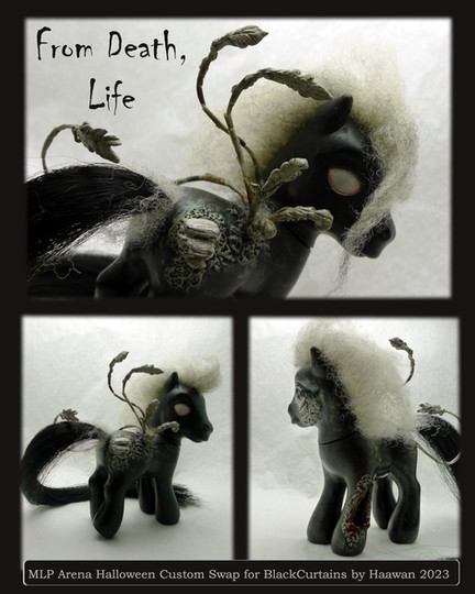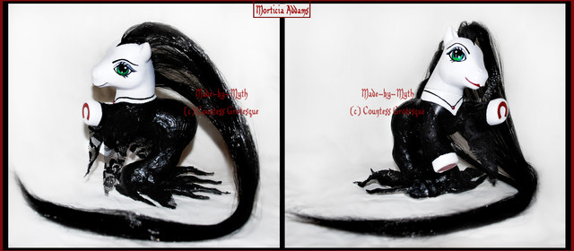 This lady was made for a trade with the super talented artistEvenfall is a pegasus who spreads her dark wings across the sky every night. Or at least that was the initial idea behind the design. (: She's pretty much a combination between two of my 2010 customs, the Celtic pony Blodeuwedd and the Halloween custom October Nights.