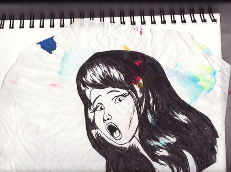 No idea where I got this design but I want to say someone saved it on my computer at some point. The background is a pretty turquoise and the face is semi-transparent black textured paint.Spray paint on acrylic art paper.