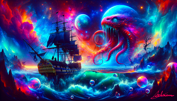 #digitalart #horror #fantasyart #monster #creature #sea #lovecraft #magic #surreal #abstractart #abstractartwork #ai #background #backgroundwallpaper #colorful #epic #imagination #sky #space #view #wallpaper #backgroundart