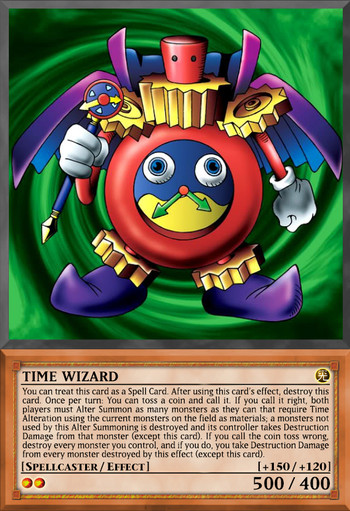 Once per turn you can roll a six-sided die and apply the result.● 1: Special Summon 1 Fusion monster that list "Time Wizard" or a "Red-Eyes" from your Extra Deck. (This is treated as a Fusion Summon).