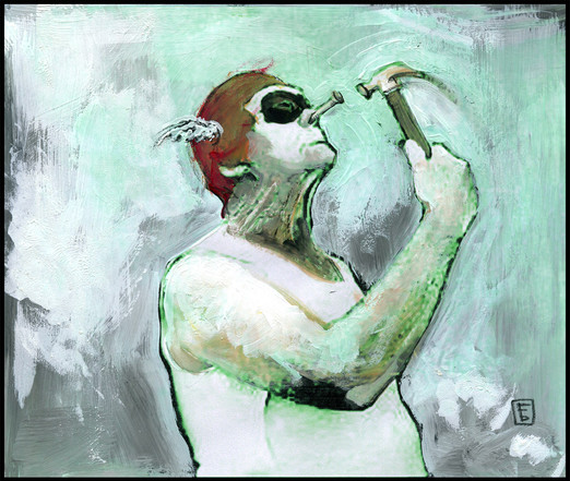 There is very little about this piece that isn't a masterpiece. I adore the color choice. The background and Raven both look straight out of the next Metal Gear Solid. Just awesome work all together here.
