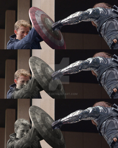 The sound of Bucky aka Winter Soldier's metal fist hitting Steve aka Captain America's shield was EPIC