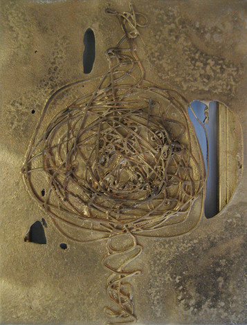 spray paint, rubber, oil on canvas