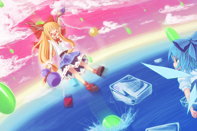 Well logic what's that? But glad to see a touhou character meeting Spongbob and Squidward driving a rock delivering pizza.