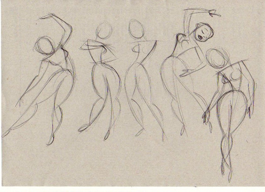 Wow! For the dancer in lower right corner, instead of looking back at her hand she should be looking beyong the front (left) hand. Also, her hips could be more square (dancer's hips act like headlights, my teacher says) which means that her right hip could be more where her left hip is. Cool though!