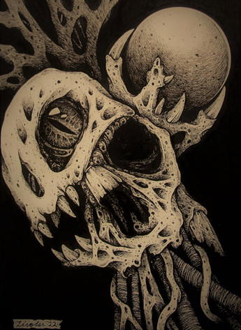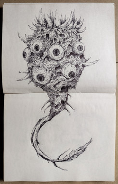 - 3 black eyes at the top (animated?).