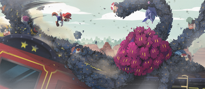 The angle again is really what brings it all home with the placement next to Mario so you can see the scale of the room, the giant feel for the plant and so much more.Β What really brings this all to life is the coloring itself, having that very warm and heated glow everywhere you look.