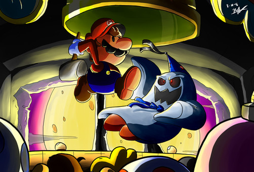 Nicely job on the foreshortening and perspective, the exaggerated fisheye lens really makes it look dynamic! It's always nice seeing fanart of Thousand-Year Door, the best Mario RPG in my opinion.