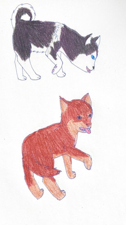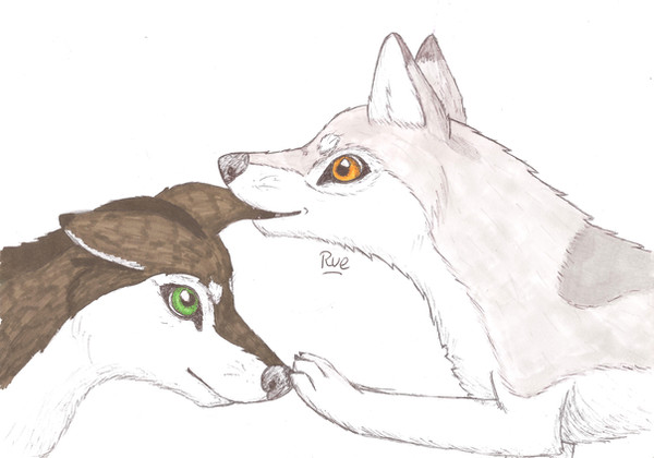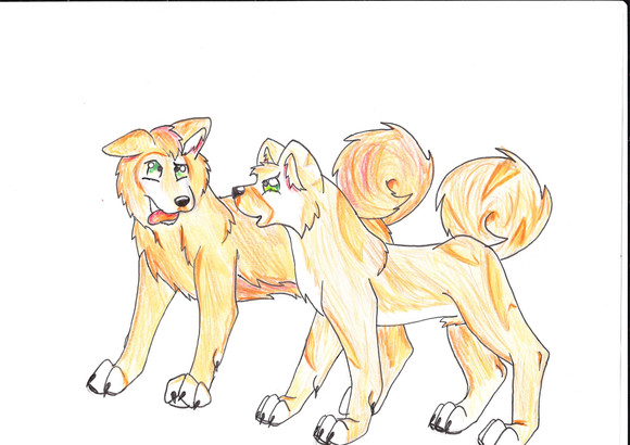 I tried to draw Riki and shiro together , when Shiro was still alive and Riki was young and unmarked ...but the paper is too large for the scanner so I took a photo , but it lost too much quality ....Related content