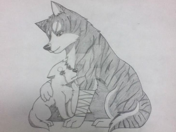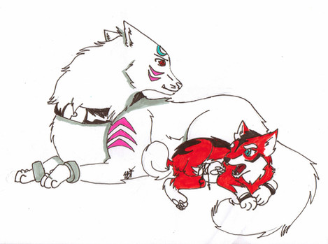 I know it looks kind of weird ...It's supposed to be Yamato as a puppy enjoying a cute moment with his father Fubuki before they ....