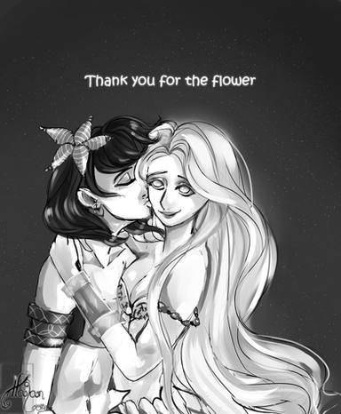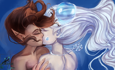 This is a positively painful scene. Noa looks so small, so scared, so hurt - her arms wrapped around her tightly, her tail curled up against her, her expression small and the light fleeing from her big green eyes... Even her flowing hair stays close to her face (I think it looks beautiful, btw!) - her heart is breaking, and it's visible.