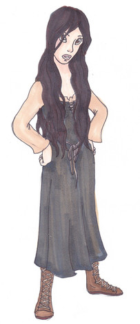 How terribly exciting. And you gotta love that blue jumpsuit thing. Looks like the Air Force and Star Trek: Enterprise collided in a horrible accident. So this would be Mia Hawkins, another character in that story that Vits and I have yet to name. Trying to bang out an idea of what she looks like. She's gone through various stages. This is the latest, and she'll probably change again fairly soon.Prismacolor Markers/Micron Outline.