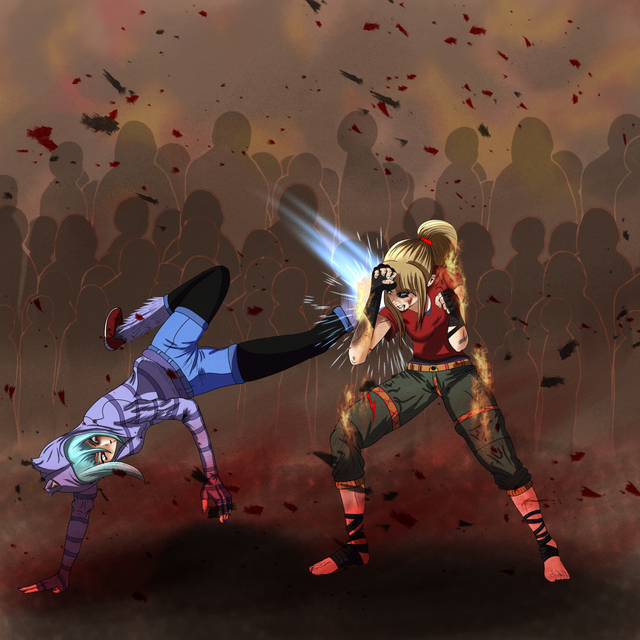 Commission forhis OC Amelia 'The Scythe' Mortimer kicking some heads