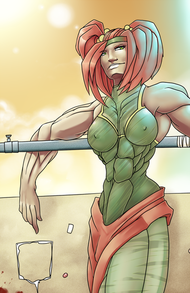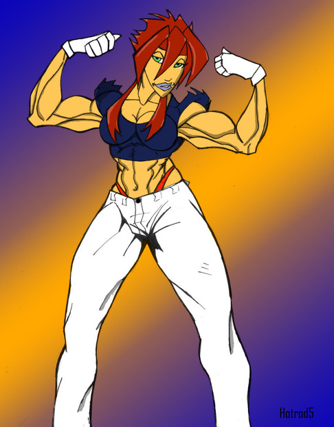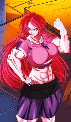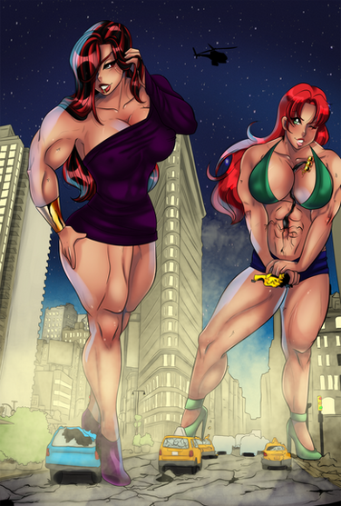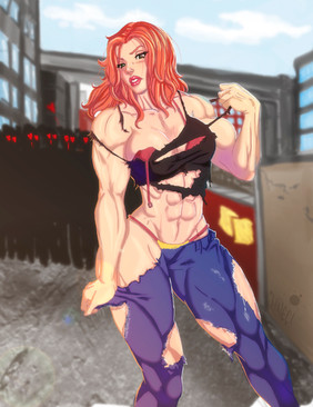 This is amazing! Quite possibly among the best renditions of her yet! Candy's face looks stunning! And her hulking muscles are growing to an incredible size! Great work on that! Such awesome detail! I love how she's ripping them as she grows! Plus, great city background! The love-struck people in the background looks humorous! Nice idea in adding that!