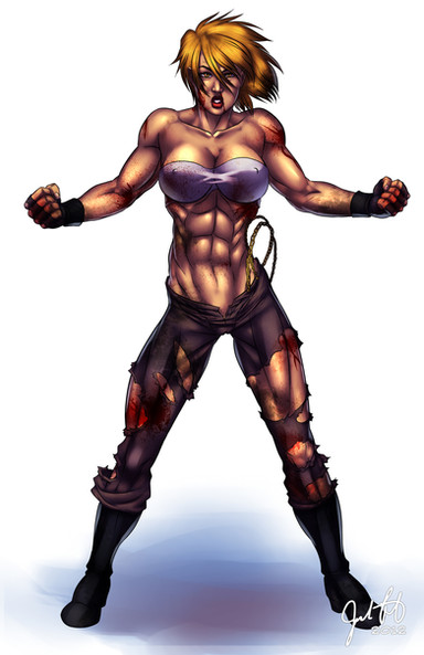 Hmm... the aftermath of a fight or is she just destroying her clothing for giggles?
