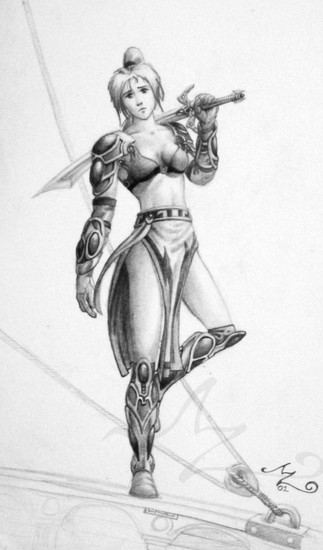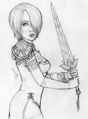 That's definitely how I like Karyana drawn: cute, sexy, badass. I'd tip my hat if I wore one, 'cause you really worked her body, clothes and sword perfectly.
