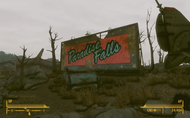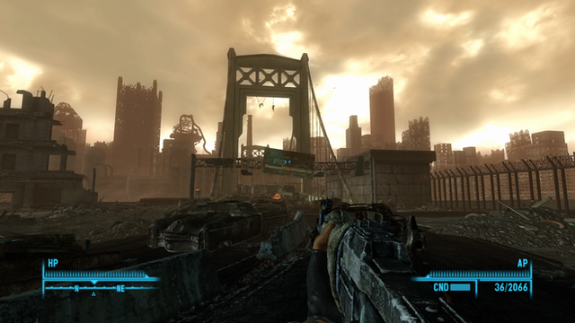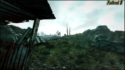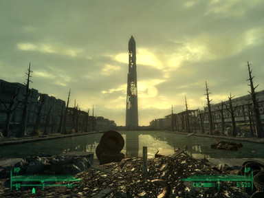 Here's a shot I took of Springdale, a small destroyed neighborhood just north of Megaton. The reason it's so dark and foggy is because this was with my evil character in which I had taken Mr. Burke's offer and blew up Megaton. Now the whole place is bathed in happy radiation and ash. ^^Corvega ftw....