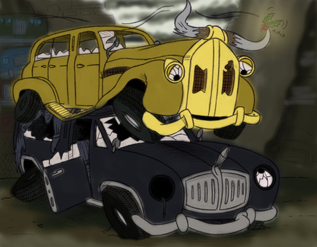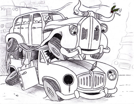 OoOOooooooh The tree cutting machine evil. Nice drawing of it.