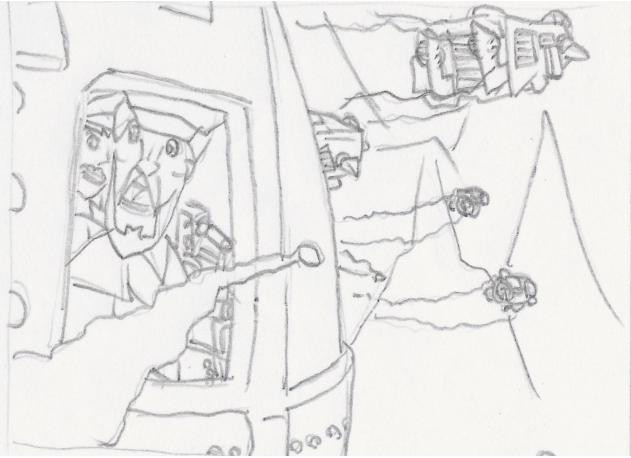 Damn... this is a good drawing of such a complex-looking machine. Have you ever wondered if it would be practical for real? I have since I first saw the movie.