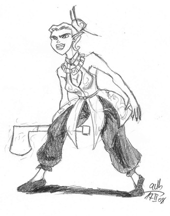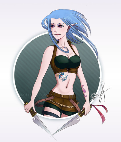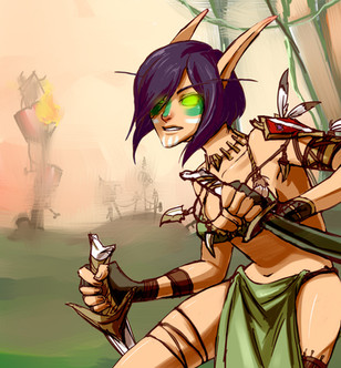 Well what can I say? THIS IS AWESOME!!11 Thank you, Thank you, THANK YOU . This is one of the Best gifts that have been giving to me.It all started when I was wanting to look up the Back story to Lady Sylvanas Windrunner. Why she is what she is. When I typed in her name to Google. I came up with this picture [link] . I knew I had to color it. It called for me. So I asked Ainikki. Could I please color it. She kindly told me sure. I colored it up and reposted it up. Ainikki I guessed loved it so much she offered to draw one of my Favorite toon's. With out a second heart beat. I knew who I wanted drawn. My Rogue BralarΓ‘.
