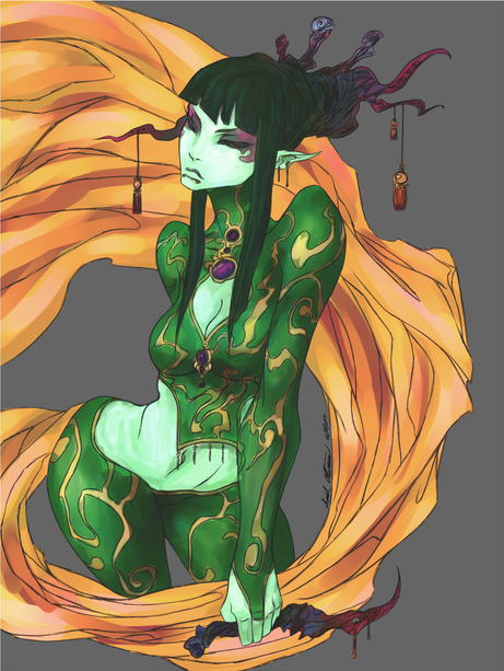 Ainikki drew it up and sent me the rough copy. My jaw dropped. It was everything I thought of AND MORE! She has the Playful looking attitude. She has her Moths out. It is just pure 100% AWESOMNESS to me.