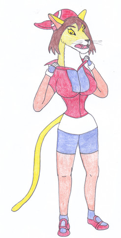 This would be awesome in a sequence. I could see her feet changing and tail starting in the first pic. This would probably be the next pic. Then for the final one she could have rear cat legs, real paws instead of hands, and fur over all of her. Probably not standing on two legs due to having cat legs.