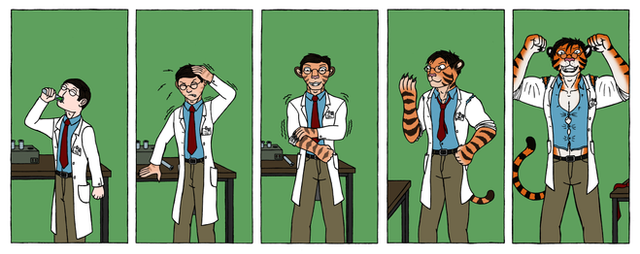 One must wonder, when would those people who conduct strange genetic experiments in their lab learn to be more careful?For those who didn't do their chemistry homework, cations are positively charged ions. Why did I put it there? Well, it's a pun!! Cations? Cat-ions? Geddit? Buh dum Tzzz! Yeah... I deserve hell for that lame joke. XD And just why would a scientist who is good enough to perform genetic modification experiments have cations and anions written on a black board? I wish I knew.