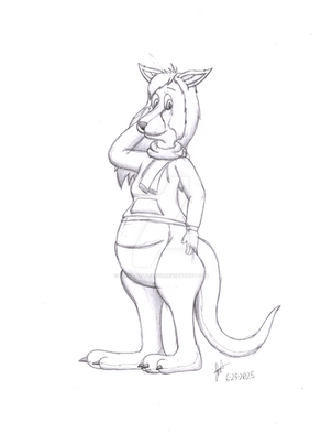 I was talking with on AIM one day, and I asked him to name me a species of creature to draw for my next drawing. Can you guess what he said? Yes, a roo.Now obviously he wanted to give me a challenge, to see if I can really draw whatever he names, and to tell the truth, a challenge it was. ^_^" I actually had to refer to some of 's pics to get the ears and muzzle right (If you're reading this Mr. Cameroo(however unlikely it is), hope ye don't mind. ^_^") One thing I didn't get right though, is that patch of fur on his stomach, I was never the expert on drawing fur patterns... TT_TT