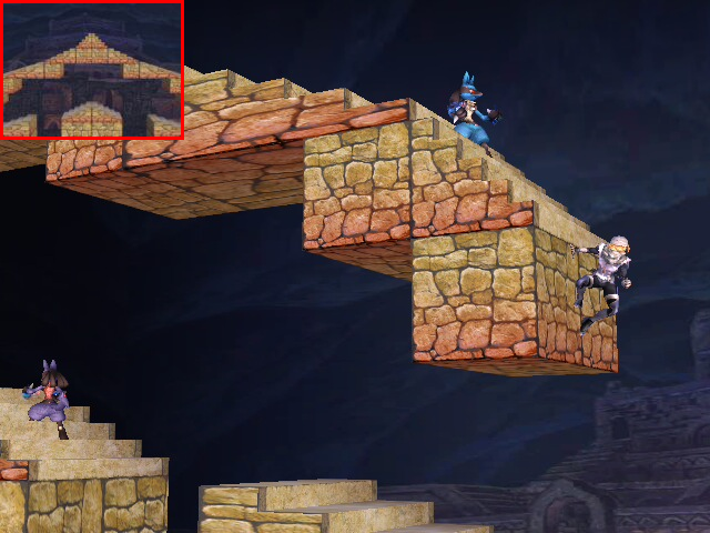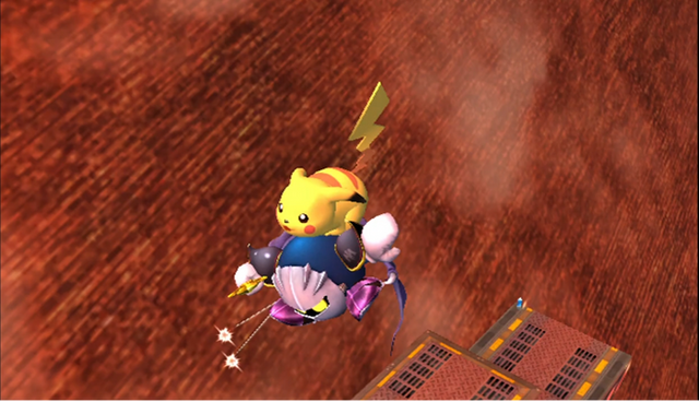 The title says it all! It's a pinball machine. None of the bumpers or paddles work, but that's okay, because you're going to be knocking each other off the walls instead. The stage is enormous, and comes down to a big pit in the middle. You can't catch the edges of the pit, 'cuz that's the only reason it's dangerous. Likewise, the outside edges of the stage can't be grabbed, but the tops of the tall walls can. There are a few places where KOs can be tricky, but for the most part, it's open space and free movement. So just keep hammering your opponent until they ricochet into oblivion! Of course, meteor smashing them down the pit is a good idea, too...