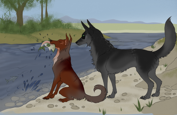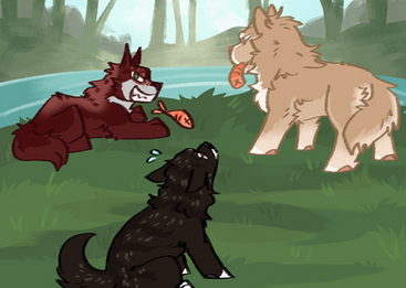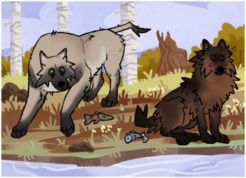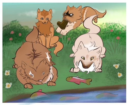 Omg. Fisher needs to learn some manners and share the fishies! Haha I LOVE the expression you drew. He looks so cute!