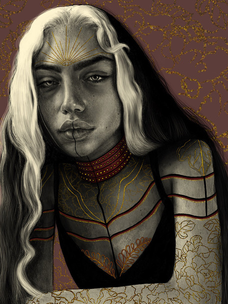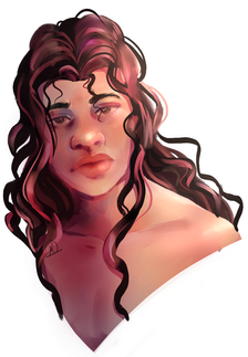 OH there's such an exciting subtle range of colors in her hair.. I love that you have lines to detail every strand of hair without it looking cluttered? It's probably bc of the softness of the brush, I often find that hair that's rendered with really small super sharp closely packed together lines looks a little weird? Even though that's what hair looks like irl LOL but it often can be jarring with some art styles. Her hair is gorgeous, though, kinda reminds me of that super soft sheep wool w all the diff greys and whites and blacks...