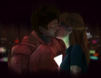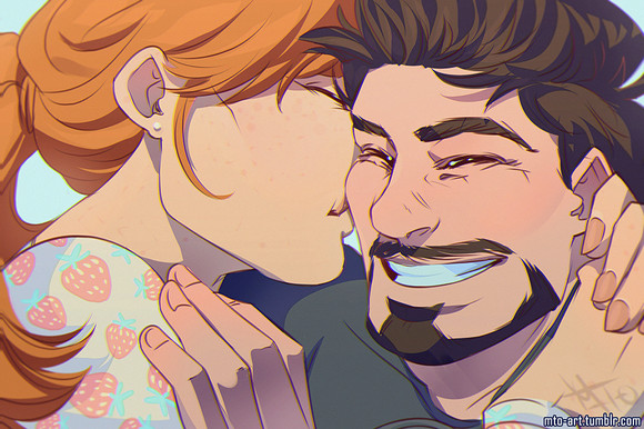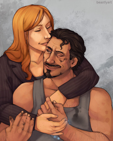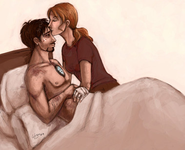 so precious! love Pepper's expression. You can almost hear her thinking 'you make me crazy Tony, but I love you so much!' And such a sweet unexpected moment of vulnerability in the whole line of Tony's body, not to mention his face. <3 Very nicely done!