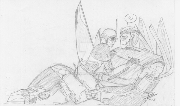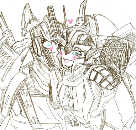 "....'Cause you're not going anywhere."Something I had drawn for MNS-Prime-21 as a gift, since she also likes OPxArcee as much as I do. Yes, she put cufflinks on his wrists