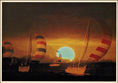 “Small excursion boats still race during July 4th celebrations as the great steamboats did in the 1800s. At right is the Admiral, (the) largest inland excursion vessel.”