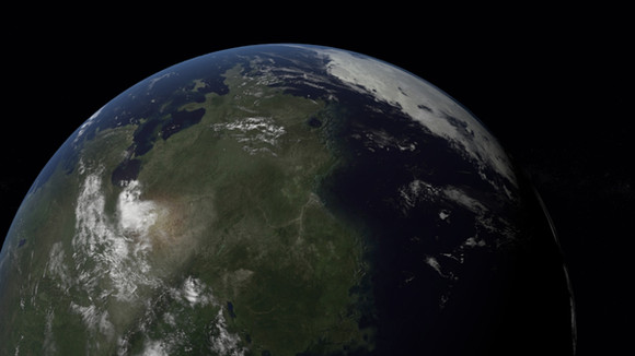 Above is a view of Earth from space, 3 million hence