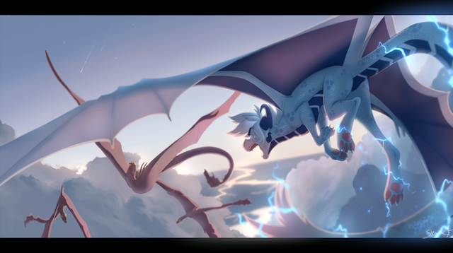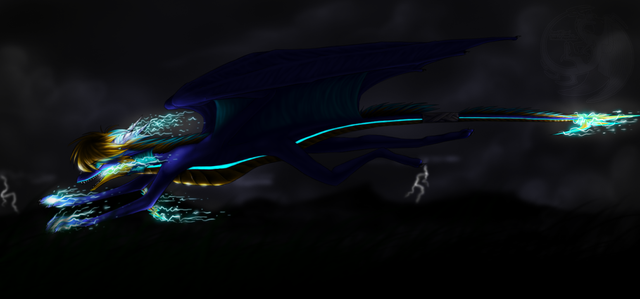 I LOVE HOW YOU DID THOSE EYES AND THE BLUE SMOKE COMING OUT OF THEM. THE LIGHTNING LOOKS FANTASTIC! I LOVE THE ONE DRAGON GETTING ZAPPED BY IT IN THE BACKGROUND!