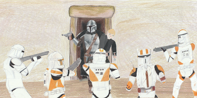 Action movie guns blazing is what I was imaging. Just an ARC trooper going completely OP and taking out all the bad guys in a matter of seconds