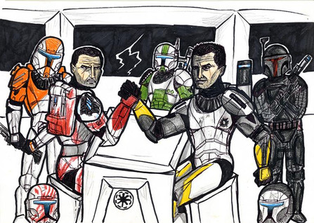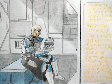 Just something to help wind down after work. I had an idea that kaj would have taught and trained alongside the troops in trooper gear.I imagine that the clones would have hobbies too. Nothing extravagant of course, they don't exactly have access to anything fancy but maybe some like drawing? Perhaps in between training exercises one of the 184th drew his instructor? Β The GAR can spare some flimsi and a few stylus(es?)