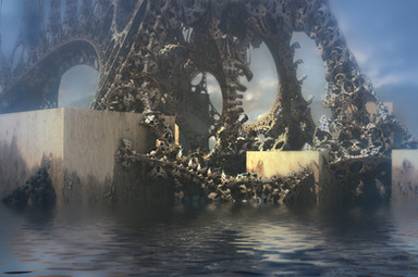 "The Object" appeared one day, uninvited and from points unknown. A curious thing, floating in the air, stationary and silent as if it were guarding those that passed beneath. Or perhaps threatening if you're one of those intimidated by the unexplained happenings that crop up from time to time. Me? I just shrug my shoulders and find another way to get where I'm going without tempting fate. I freely admit I'm a coward and will probably live longer than most because of it.Made with Mandelbulb 3d and using the Flaming Pear Flood plugin. Posted on The Face a few days ago...