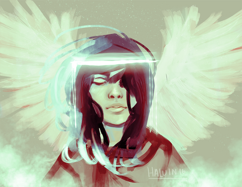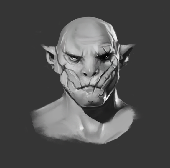 Very creepy. Love this black and white scheme and the fading. She looks like a proper angry ghost.