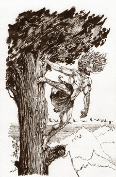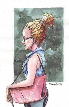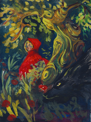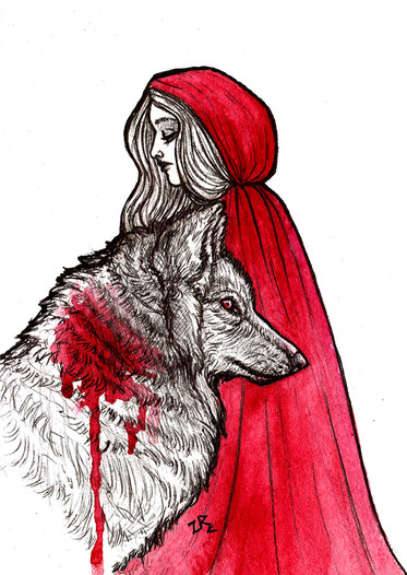 Ink on 9"x6" sketchbookLittle Red Riding-hood walks right into it. It is inevitable so the story says!
