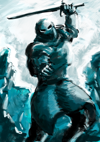 The surrounding water around the knight acts as a subtle framing boarder of the picture itself.