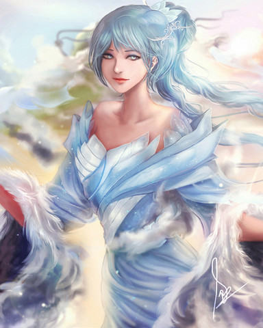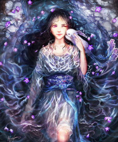 I'm glad the colours worked out because I was having real trouble with it. Those shades are my favourites and so I tried to integrate those shades of blue into the painting. Also designing the costume and overall look was quite challenging, but it makes me really happy that you like the design. And the fish were a last minute addition to get rid of an empty feeling, but I'm happy it worked out somehow. XD