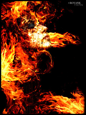 Wow, I really like this! Very intense, the flow created by the flames and sparks is absorbing. I don't know if you added the leaves on her top or not, but I LOVE them! They fill in what could have been a dark "trap" corner for the eye. I also love that they are leaves surrounded by flame, not what one expects. GREAT JOB!