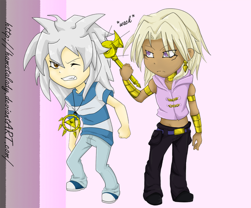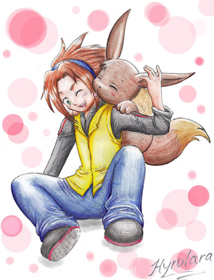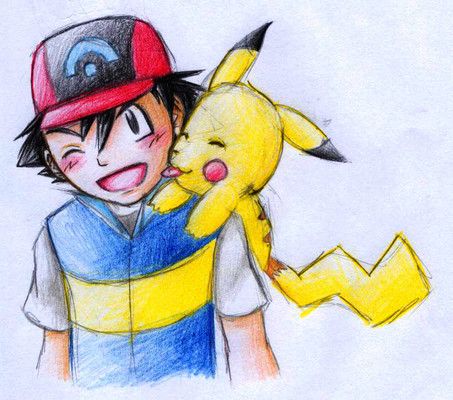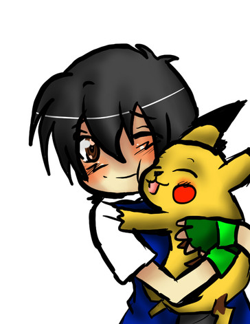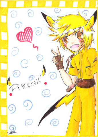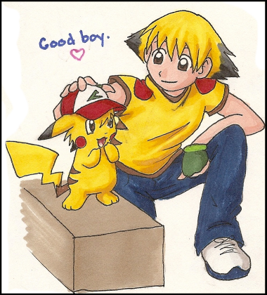 The actual sketch of this was alot cuter I think DxOh well. This is the product of watching too many youtube videos of Bakura's Japanese Voice actress singing pokemon songs. (Rica Matsumoto, Shes also Ash/Satoshi's voice actress, hence, Bakura with a pikachu xD)