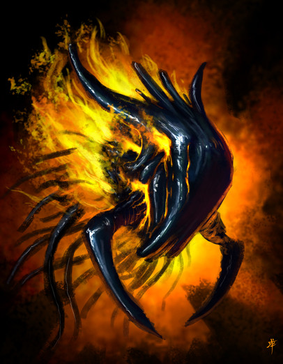 Looks like a Zerg über boss battle! Like the Zerg captured a fire colossus and transformed it, integrated it into the hive. Its a flying fortress of fiery doom!