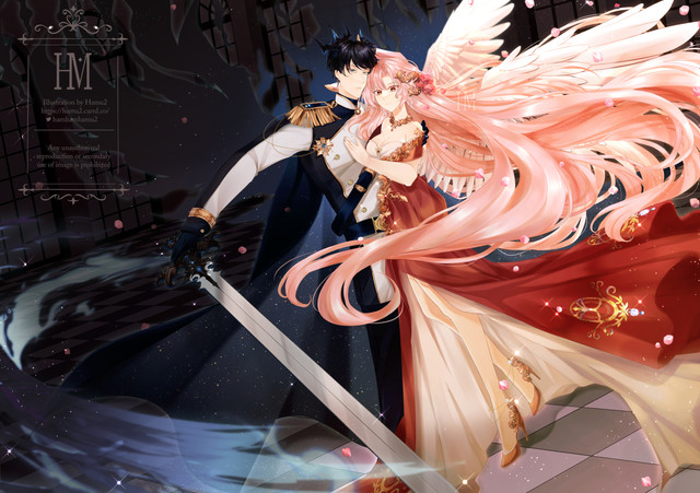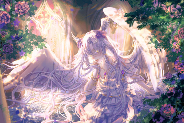 #background #blonde #digital #dress #fantasy #girl #holy #originalcharacter #painting #rose #sword #wings #originalart #originaldesign