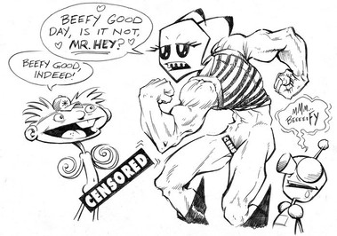 ah It isn't letting me see it, but I KNOW what it is. Someone pointed out the 'similarity' before, but it is a little scant - the black kid and a blonde with goggles. Luckily I don;t have a cripple with super powers. And no worries - I am not selling hamburgers to unsuspecting kids.