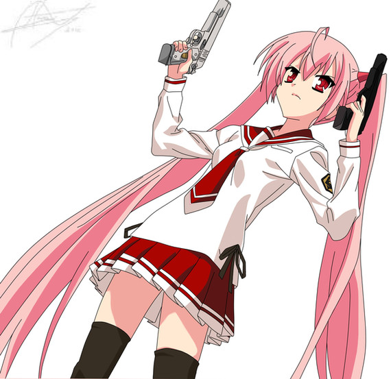 ^_^ Awesome. I really like her. The gun makes me think of Angel Beats or Persona 4. Love her colors.